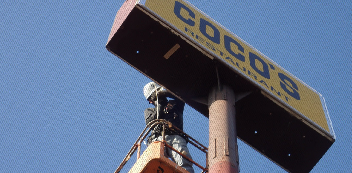 ヨシダアートでは、保守管理をサポートさせていただくため、専任の屋外広告士有資格者である検査員による点検業務を行っています。